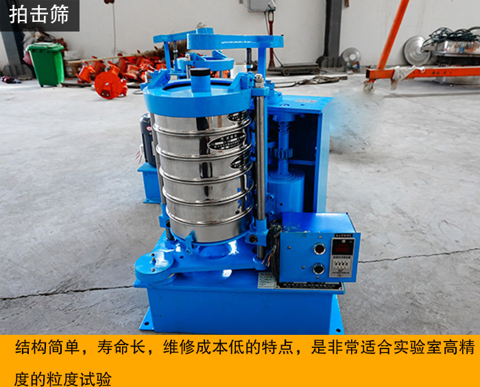 拍擊篩又叫做拍擊式標準振動篩,適用于普通磨料的粒度組成檢查和超硬材料產品的生產分級及粒度檢查。廣泛的應用于科研生產部門對固體材料的篩分機檢測。具有結構簡單,壽命長,維修成本低的特點,是非常適合實驗室高精度的粒度試驗。