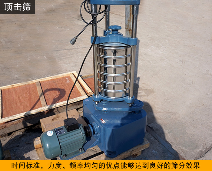 頂擊式標準振篩機又名頂擊式標準振動篩,符合建材、地質、交通,化工等等行業有關測試規范和要求。利用偏心的原理使機器的平臺面發生有規律震動和頂擊,主要配套標準分樣篩使用,代替手工篩,篩分物料的級別。具有時間標準,力度、頻率均勻的優點能達到良好的篩分效果,適用于建筑、公路,地質、冶金、化工、煤炭、磨料、食品、飼料,醫藥等部門的實驗室或化驗室對顆粒物料進行篩分分析,頂級篩可以配各種規格的方孔、圓孔標準套篩,是生化實驗室、分析室、教育科研的必備篩分設備。
