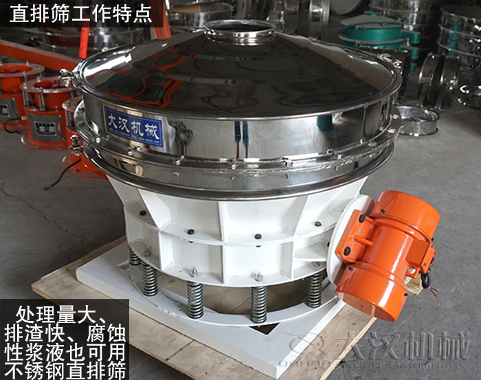 直排篩直徑范圍控制在600——1500mm之間,采用標準304不銹鋼精制而成,腐蝕性漿液也可選用此型號直排篩。