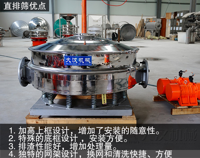 直排篩采用中頻電機、加高直排篩框體的設計,大大解決了漿液過濾過程中大能耗、產量小、效率低的難題。同時也解決了漿液處理過程中漿液外濺的問題,使物料處理量更大、排渣更快。
