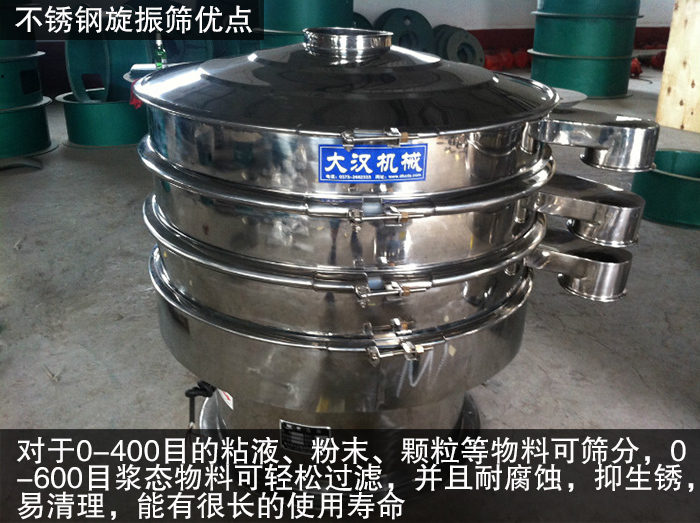 不銹鋼旋振篩材質(zhì)分為標(biāo)準(zhǔn)型旋振篩和全不銹鋼旋振篩兩種,前者是與物料接觸部分是不銹鋼,后者是整機(jī)不銹鋼材質(zhì)。研磨材料振動篩使用的范圍廣泛,0-400目的粘液、粉末、顆粒等物料可篩分,0-600目漿態(tài)物料可輕松過濾;并且不銹鋼材質(zhì)耐腐蝕,抑生銹,易清理,能有很長的使用壽命。