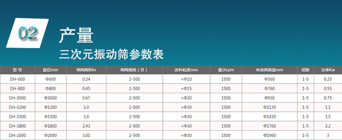 不銹鋼三次元振動篩作為非常適合篩分奶粉的設(shè)備,不僅篩分精度高,篩分的產(chǎn)量也能夠滿足大多消者的需求,而其價格是與產(chǎn)量是成正相關(guān)的,產(chǎn)量越大,價格越高,具體參數(shù)如參數(shù)表所示。