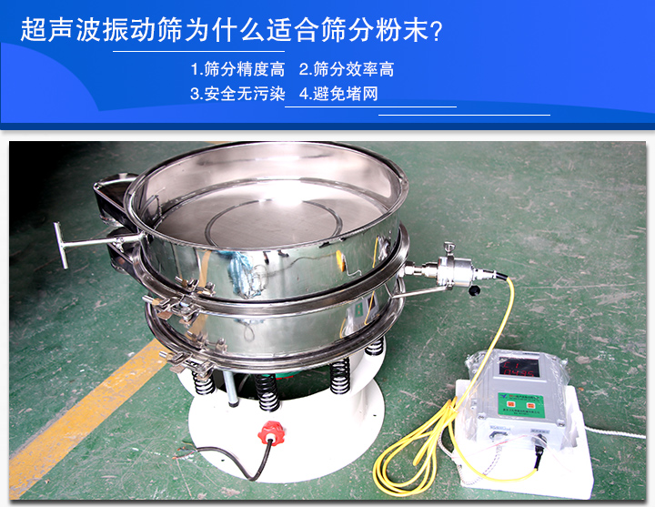 超聲波振動篩非常有效的解決了因團聚、靜電、強吸附性等卡賭網問題,減少或者不產生清網時間,大幅度提升工作效率。