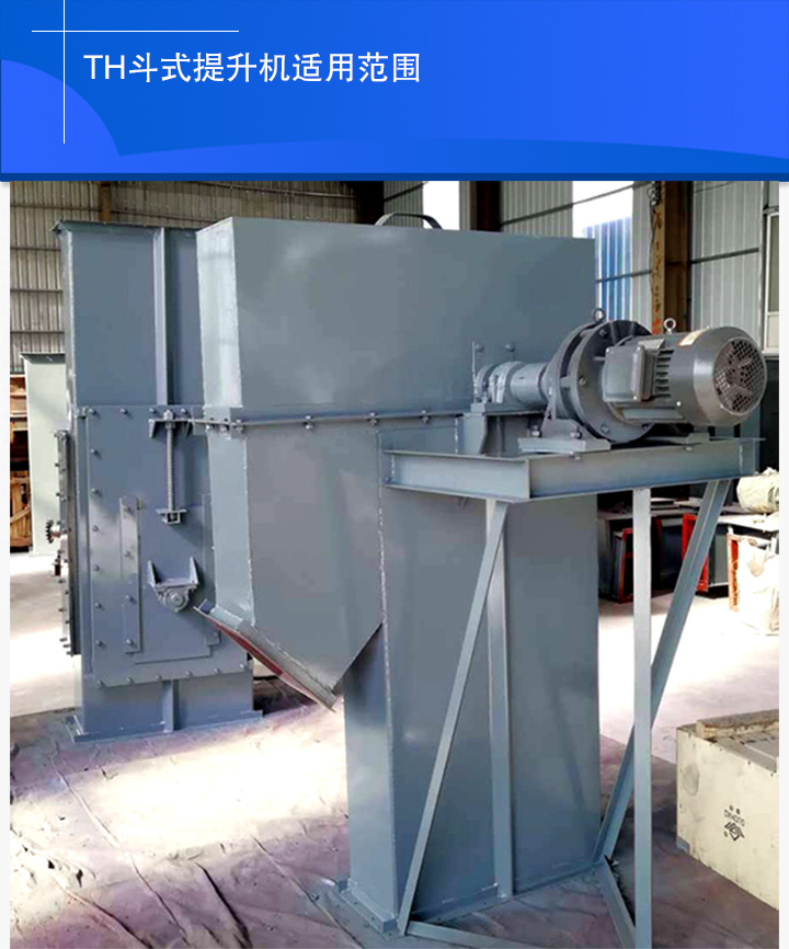 TH斗式提升機適用松散密度<1.5t/m³的粉狀、粒狀、小塊狀的無磨琢性、半琢磨性的物料。輸送物料溫度不超過250℃,相比TD斗式提升機來說,耐熱性更好,TD斗式提升機只能提升溫度小于60℃的物料。