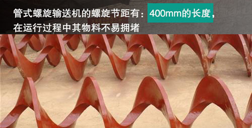 (1)管式螺旋輸送機的螺旋節距有:400mm的長度,在運行過程中其物料不易擁堵。
