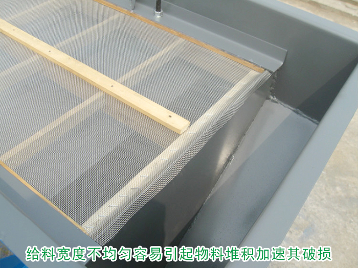 在直線振動篩的篩分過程中,振動篩面的寬度決定其處理能力,長度決定其篩分效果,如果在對振動篩的給料過程中,給料量過大使設備無法對其進行篩分,或給料寬度不均勻,引起物料堆積,都容易也使得篩網受力不均,加速其破損的情況。