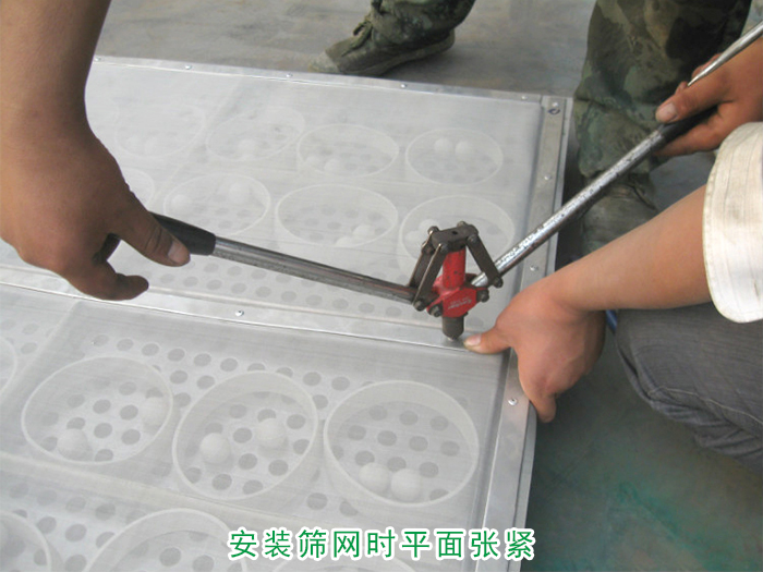如果篩網沒有張緊,在設備運行過程中,高幅度的振動會引起篩網顫動,通常沿篩網邊緣或包邊壓條處斷裂或損壞,同時由于篩網未張緊,篩面水平度不夠,容易使篩網產生變形,物料易在某一位置產生堆積,引起篩網受力不均,產生破損。
