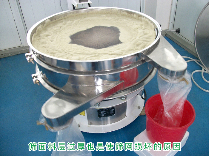投料速度要均勻恒定,次投料量過(guò)大,篩面一次承重過(guò)大,篩網(wǎng)會(huì)因突然間沖擊過(guò)大導(dǎo)致疲勞,從而影響篩網(wǎng)使用壽命。