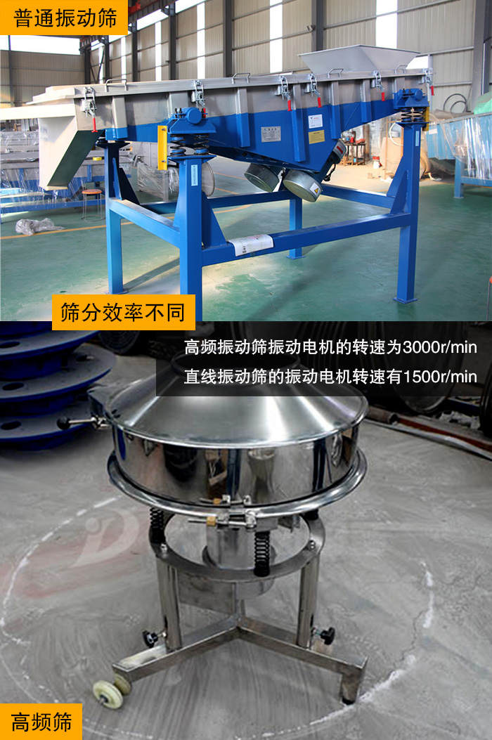 高頻篩可以輕松的破壞物料表面的張力,而且加速了微粒物料在篩網表面的高速振蕩,進而加速了大密度物料的分離速度,大幅增加了小于篩網網孔的物料與篩孔接觸的概率,從而創造了很好的分離條件,使小于篩網網孔的物料,特別是比重較大的物粒快速篩分分離。