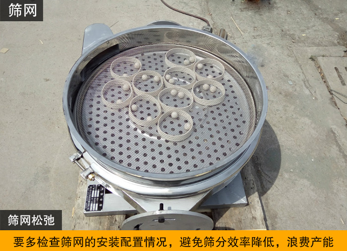 直排篩在工作一定程度后,由于物料對篩網(wǎng)的拉伸度會延長,造成網(wǎng)架與篩網(wǎng)之間出現(xiàn)松弛的現(xiàn)象,從而出現(xiàn)生產(chǎn)效率低的現(xiàn)象,用戶要定期查看篩網(wǎng)松弛情況及時處理。