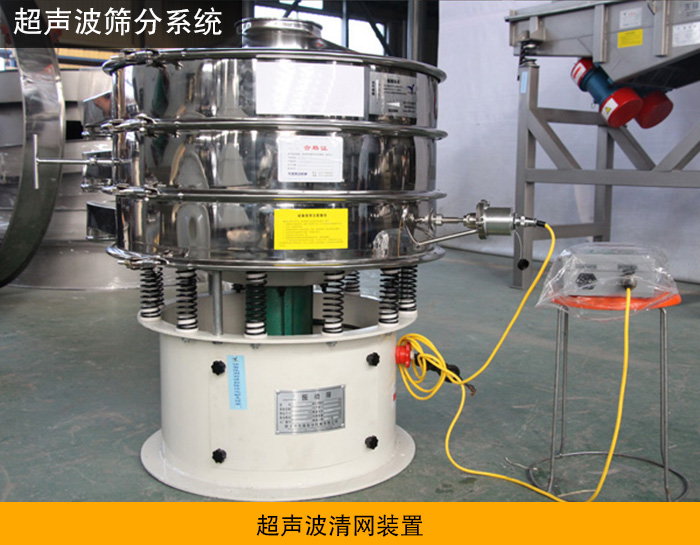 該裝置是利用超聲振動(dòng)波對(duì)篩網(wǎng)進(jìn)行清網(wǎng)工作。其主要組成部件有超聲波電源、換能器與超聲波網(wǎng)架組成。其原理是通過(guò)超聲波電源將常規(guī)用電轉(zhuǎn)換為18KHZ高頻電能,通過(guò)換能器作用在網(wǎng)架上,從而解決高精細(xì)物料的清網(wǎng)與高效篩分工作。該裝置多用于振動(dòng)篩分機(jī)中,根據(jù)需要也可改裝后用于直線篩或搖擺篩中。